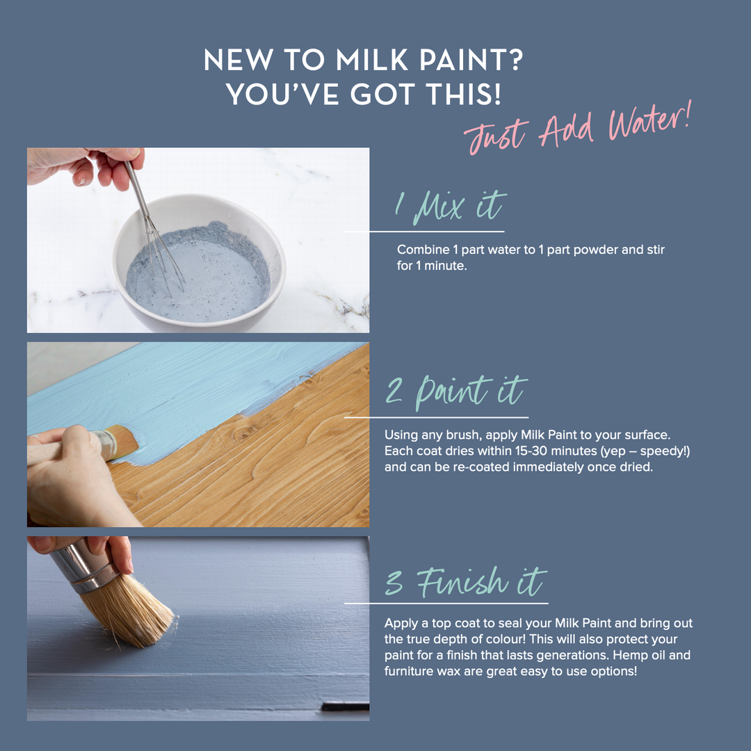 Mixing Milk Paint by Fusion is easier than making a protein shake! Just Add Water to your Milk Paint powder! Choose your favourite colour and let’s get mixing!