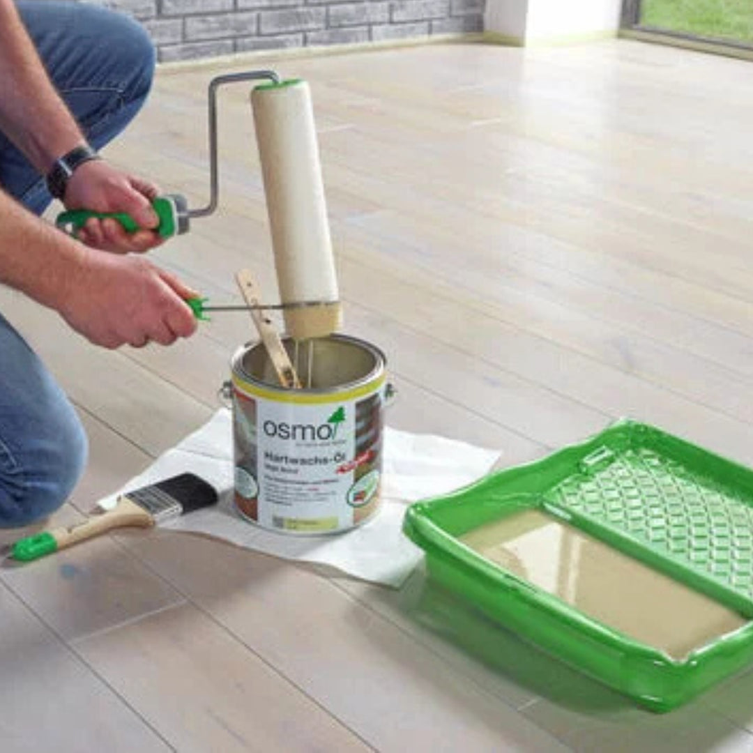 Osmo Polyx®-Oil 2K (6125) has a special curing time of 4 hours, which means the floor can be used as normal after this time. However, the other Polyx®-Oils have a drying time of 8-12 hours and a full curing time of approx. 10-14 days – during this time we advise you to keep floor traffic to a minimum and not to cover the surface as this will block the oxidation process which can cause the surface to discolour.